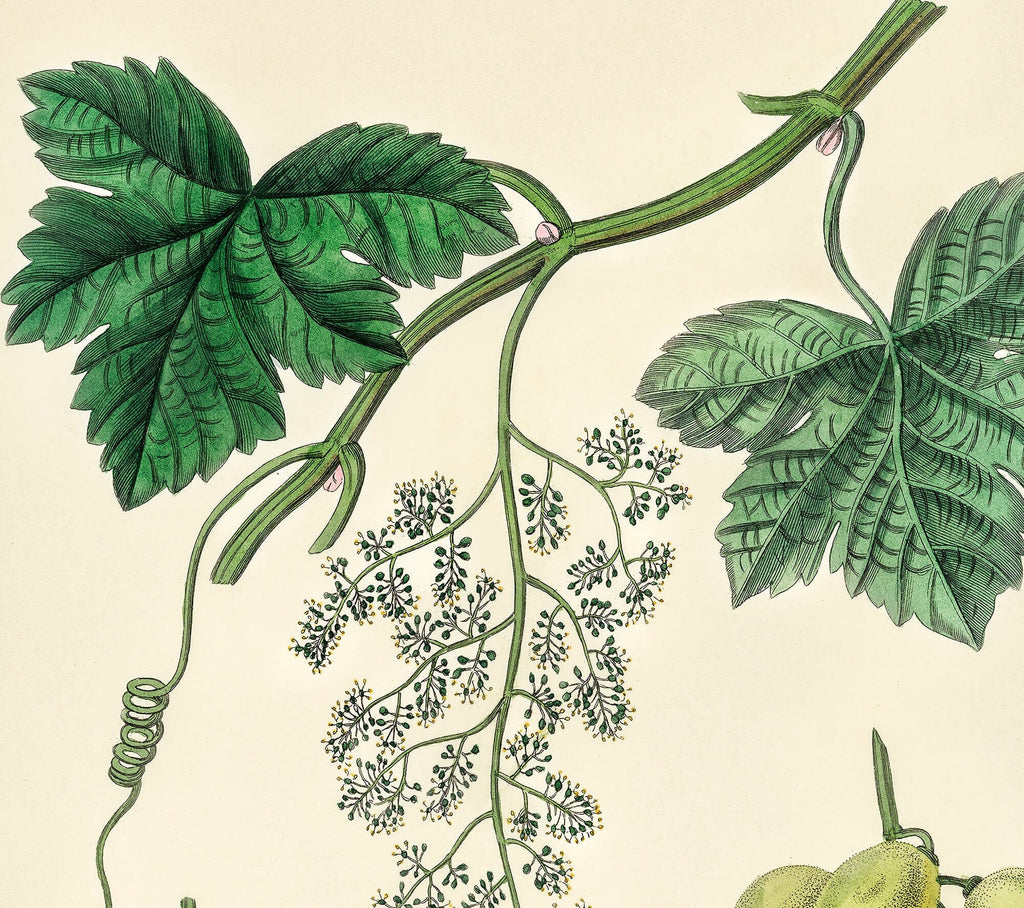This grape vine print is a vintage botanical art piece that brings the charm of antique plant illustration decor into your home. Featuring the Common Grape Vine (Vitis Vinifera) from 1836, this grape vine print captures the intricate details of a historical plant illustration, perfect for adding authentic botanical wall decor to any space. Printed on heavyweight 280g Sunset Photo Matte Paper using a 12-color Canon Pro 4100 large format printer in our downtown Los Angeles studio, this vintage print ensures exceptional color accuracy and durability.
