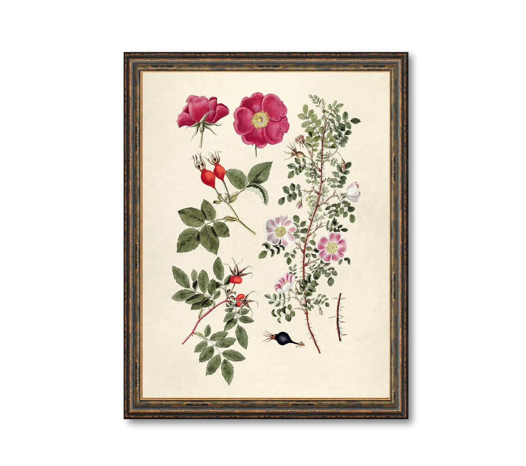 Each rustic flower artwork is available in multiple sizes, making it easy to find the perfect fit for your shabby chic wall decor or farmhouse plant print collection. The large format botanical prints come with a subtle 1/8 inch white border and are produced in our downtown Los Angeles studio, reflecting our commitment to quality and craftsmanship. When you choose this Rosa Pimpinellifolia print, you add an elegant piece of nature’s history to your living space that complements any room style.
