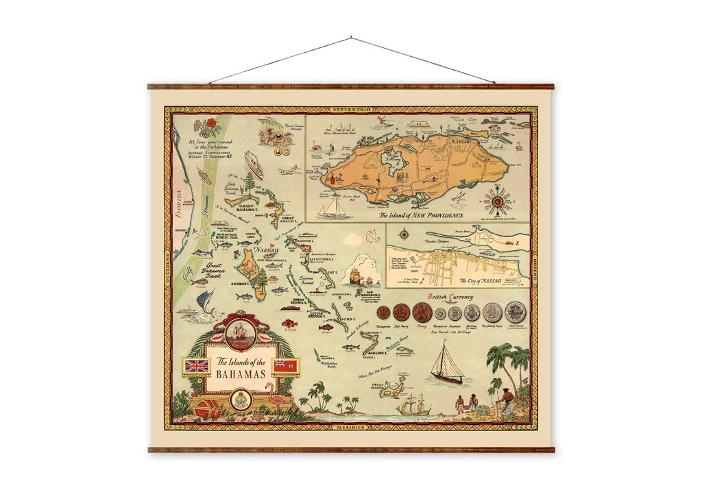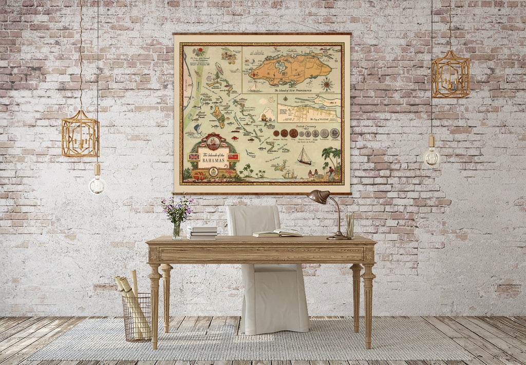 - Hand restored map ensures every detail of the Bahamas island map is faithfully represented