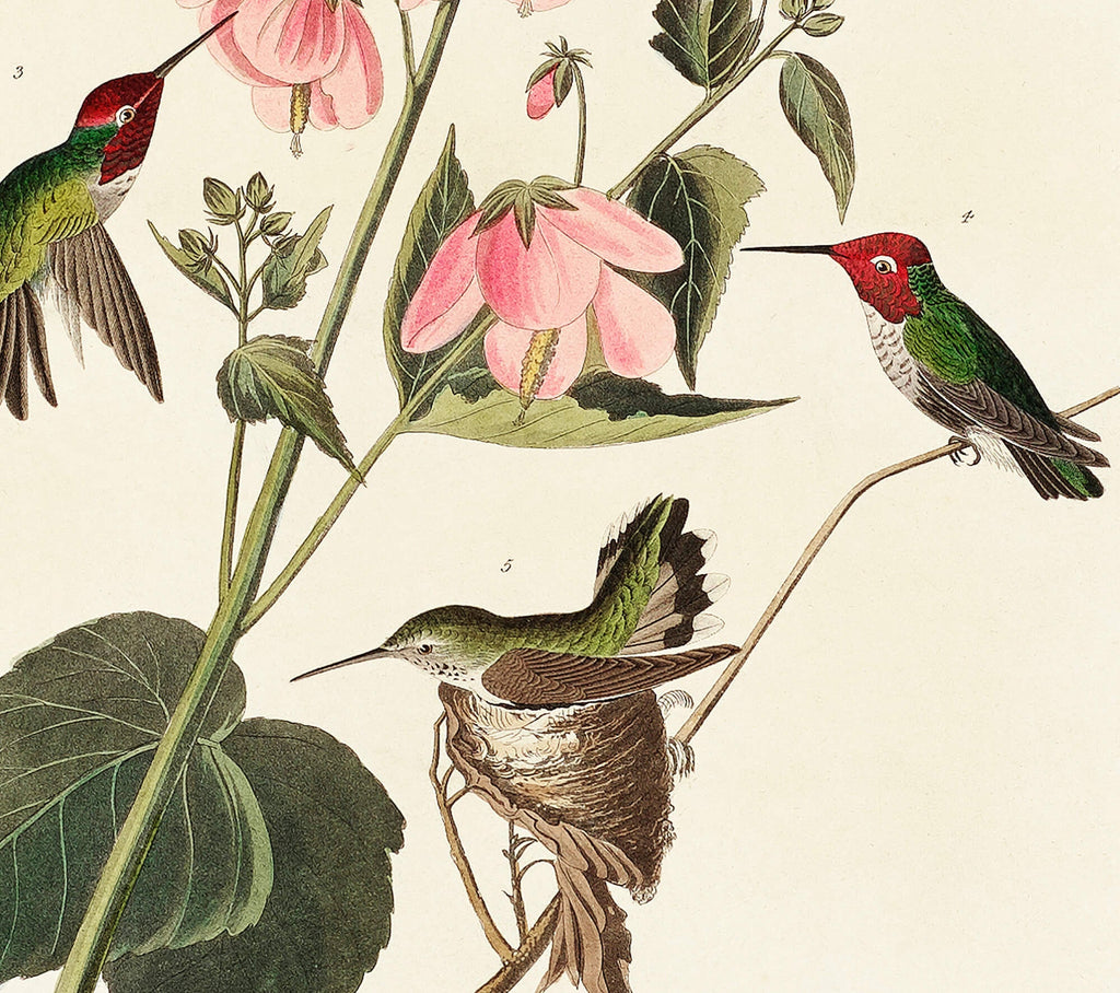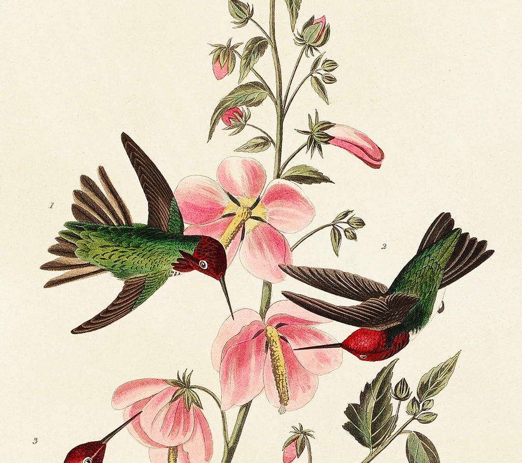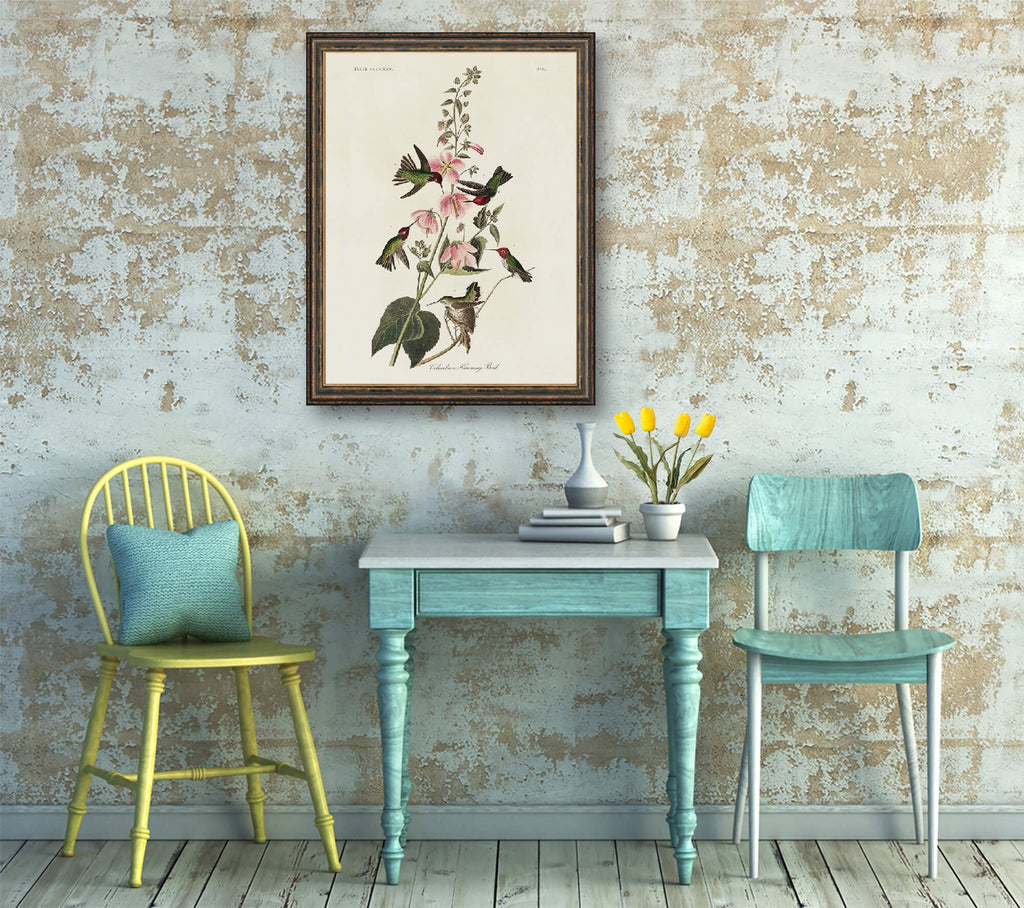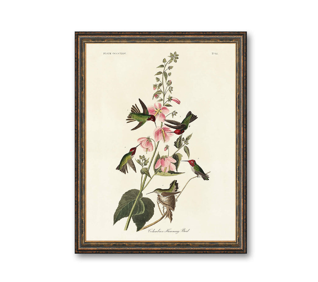 The Columbian Humming Bird Print is a stunning vintage bird illustration that brings the delicate beauty of nature into your home. This hand restored print features the iconic hummingbird from John James Audubon's Birds of America (1827), etched by Robert Havell, and printed on archival paper to ensure lasting quality. Perfect as nature wall art, this Audubon bird print offers a precise scientific bird illustration that enhances any space with botanical art print charm and rustic farmhouse decor appeal.