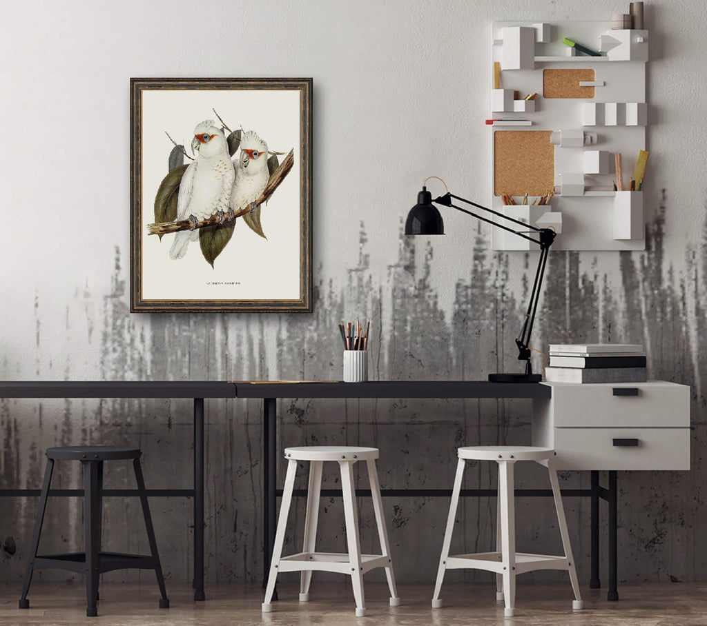 Our cockatoo wall decor is carefully restored by skilled artisans who mend faded colors and repair damages to revive the original craftsmanship. Using a 12-color Canon Pro 4100 large format printer in our Los Angeles studio, each nature art print is produced on 280g Sunset Photo Matte Paper, ensuring museum-quality finish and texture. This Australian bird poster includes a subtle white border to complement farmhouse wall hanging or shabby chic decor styles.