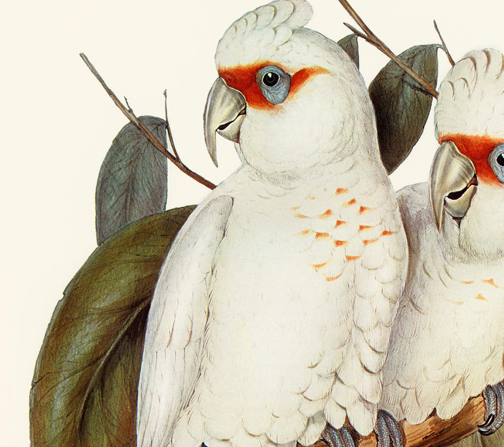 This historical bird drawing from Elizabeth Gould’s collection adds an elegant touch to any room with its classic design and rich heritage. Whether as a standalone piece or part of a gallery wall, this cockatoo wall decor complements both modern and traditional interiors. Our prints are made to order with a production time of 3-5 days, packaged securely in clear sleeves or rolled tubes to arrive in pristine condition.