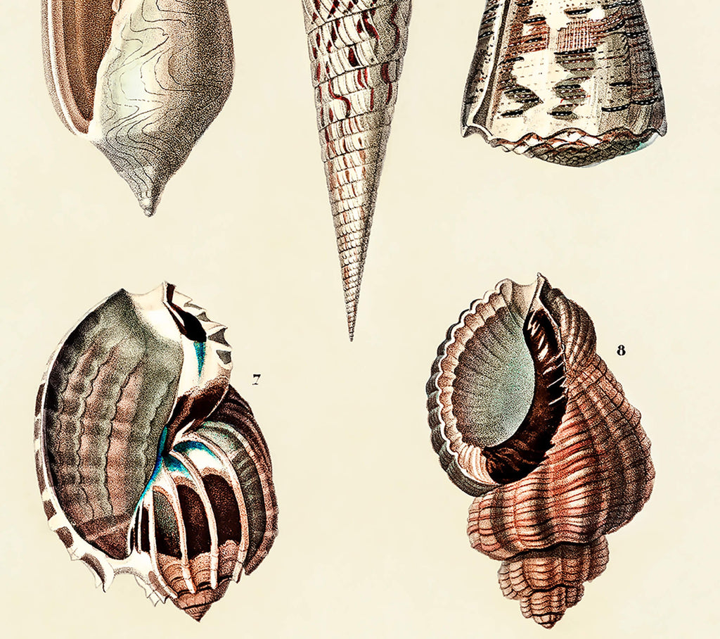 Bring home this shells illustrations print today to enjoy an exquisite blend of French beach art aesthetics and vintage wall art quality that lasts for years.