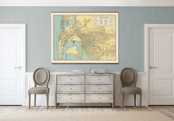 $115.00 - $325.00San Francisco Vintage Map - 1927 Historic City Canvas Wall Map Scroll