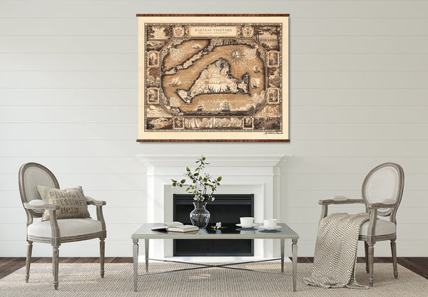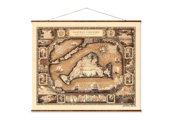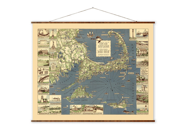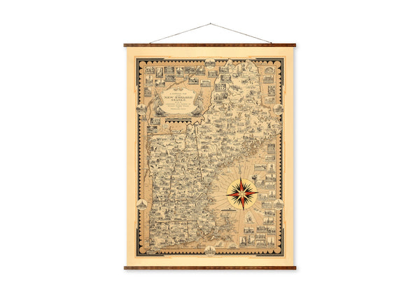 New England Map Canvas | Hand Restored 1939 Vintage Wall Decor Scroll