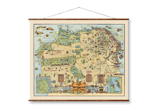 San Francisco Vintage Map - 1927 Historic City Canvas Wall Map Scroll