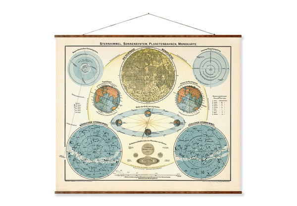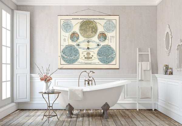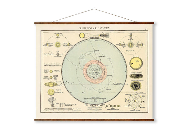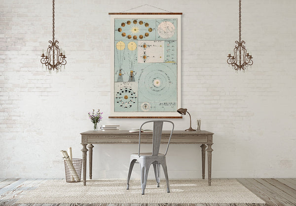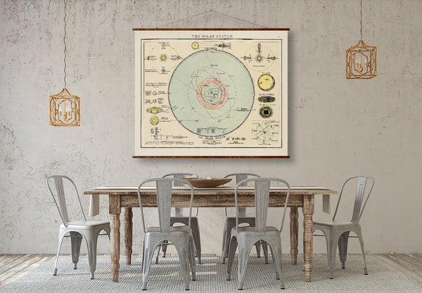 Solar System Canvas - Vintage Planet Chart Roll Down Canvas Scroll Map