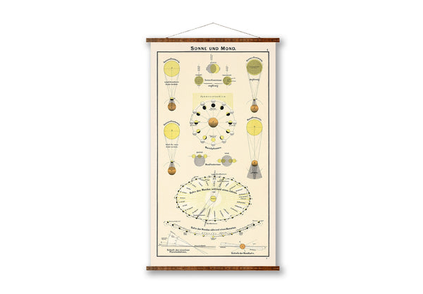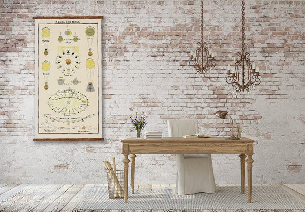 Sun and Moon Chart – Vintage Celestial Map Canvas Scroll | Ready to Hang
