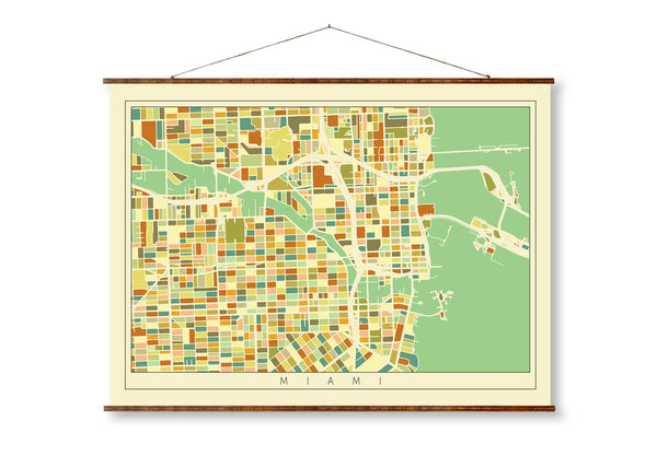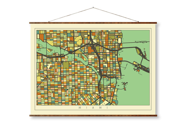Miami Mosaic Map - Vintage City Art Print | Roll Down Canvas Wall Decor