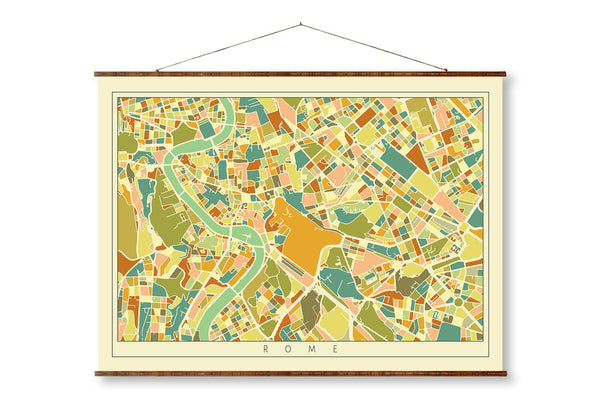 $115.00 - $325.00Rome Mosaic Map - Vintage Colored City Map Canvas | Ready to Hang Scroll