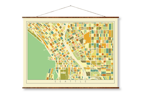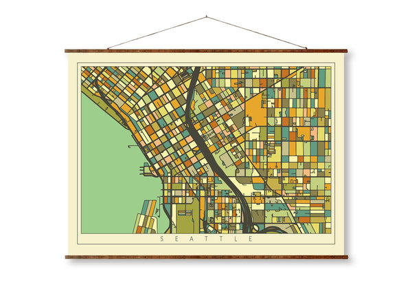 Seattle Mosaic Map - Vintage Wall Decor Canvas Scroll | Ready to Hang