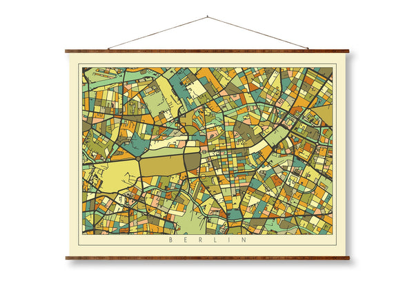 Berlin Mosaic Map – Vintage Wall Decor | Roll Down Canvas Scroll Artwork