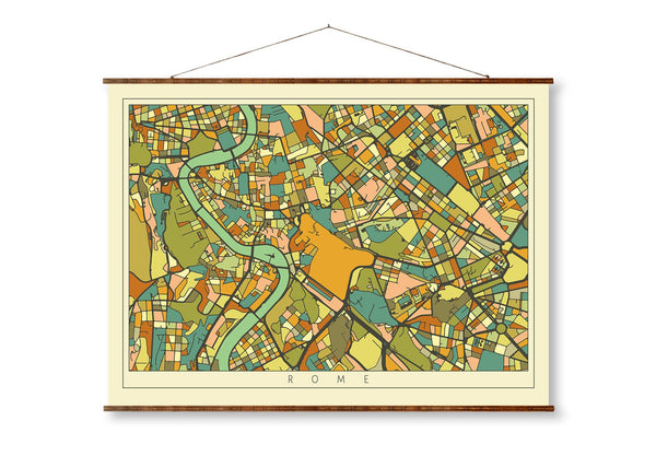 Rome Mosaic Map - Vintage Colored City Map Canvas | Ready to Hang Scroll