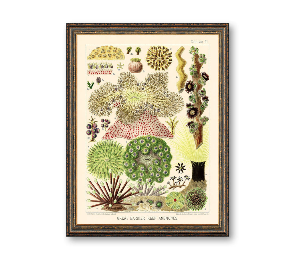 This Great Barrier Reef print is a hand restored print that brings the vibrant coral reef art of Australia into your home. Featuring a detailed sea life illustration originally created by William Saville-Kent in 1893, this vintage wall decor offers a unique marine biology print that captures the beauty and complexity of ocean nature artwork. Each piece is carefully repaired by hand to revive the faded colors and mend any damages, ensuring you receive an authentic historical reef illustration that preserves the original craftsmanship. Printed on heavyweight archival paper art using a 12-color Canon Pro 4100 printer, this scientific coral drawing delivers exceptional detail and longevity for your rustic coastal decor or nautical vintage print collection.