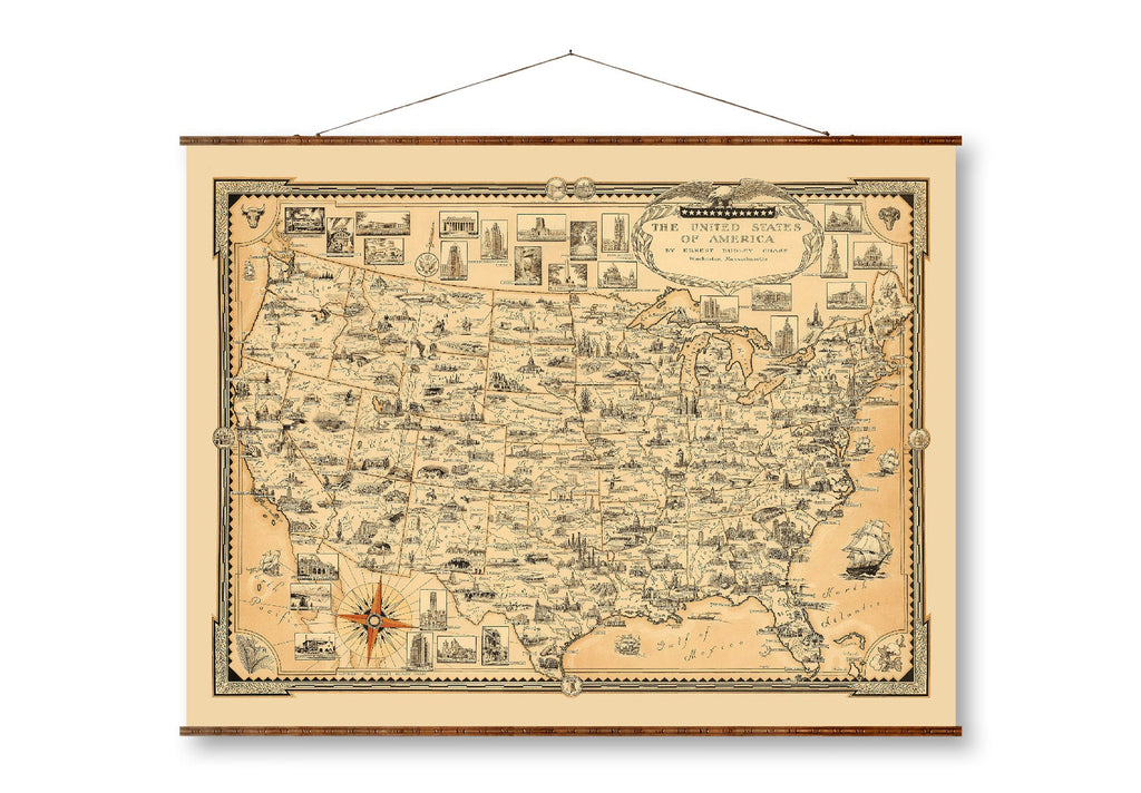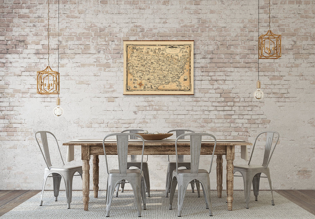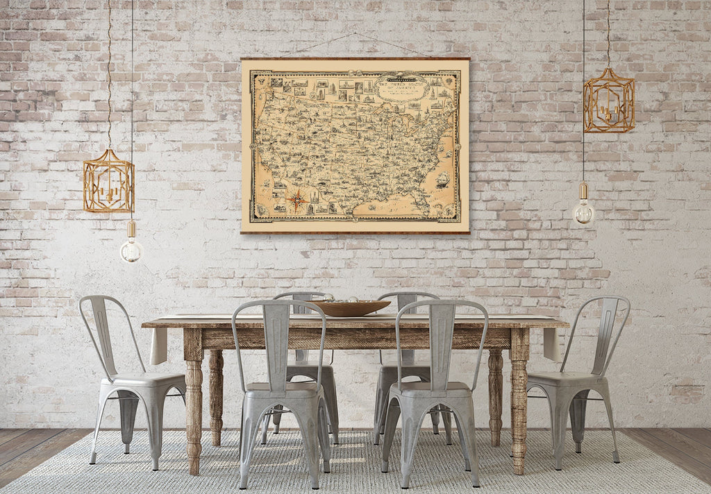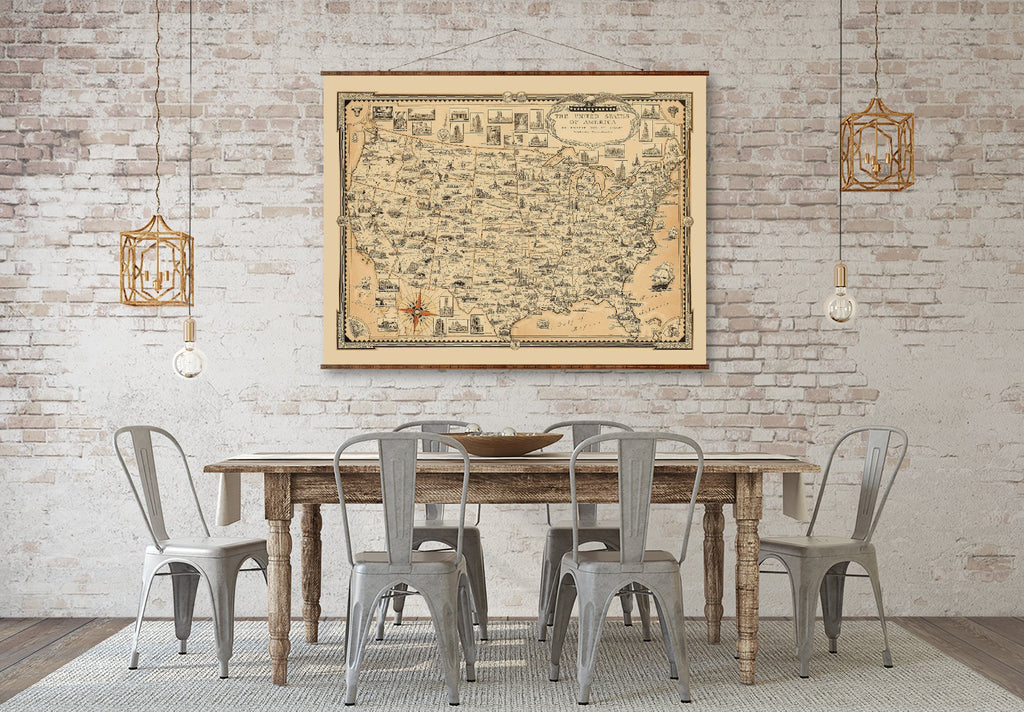 Bring history into your home with this antique style map that celebrates American heritage through beautiful pictorial details. Perfect for living rooms, studies, or offices, the 1935 USA map canvas is a unique decorative wall art choice that sparks conversation and admiration.