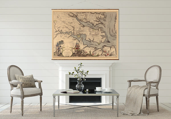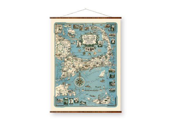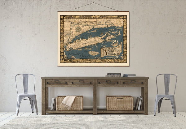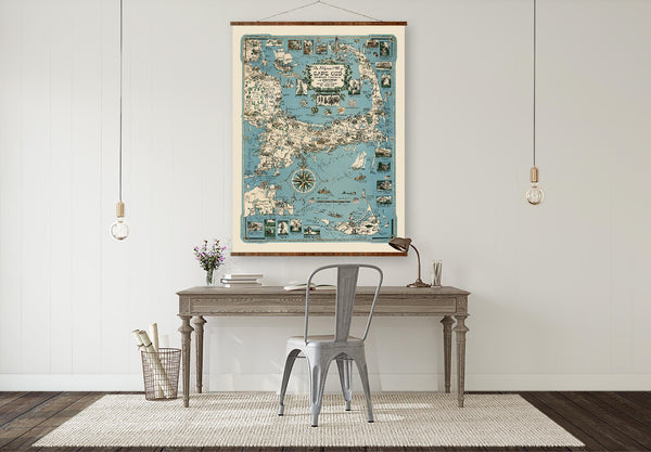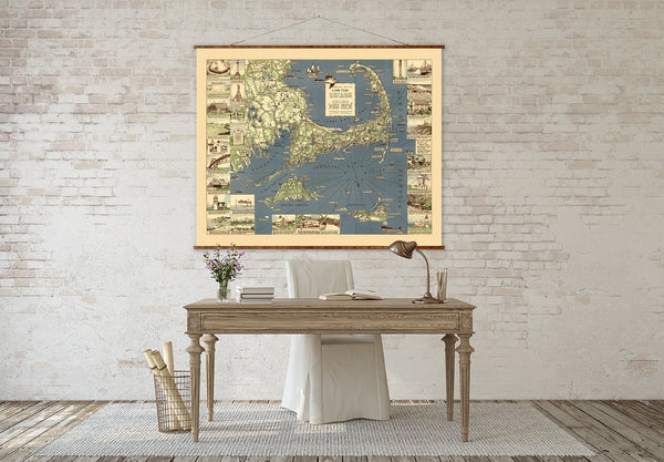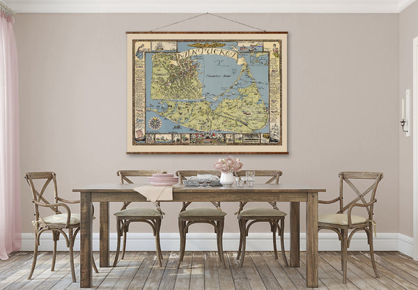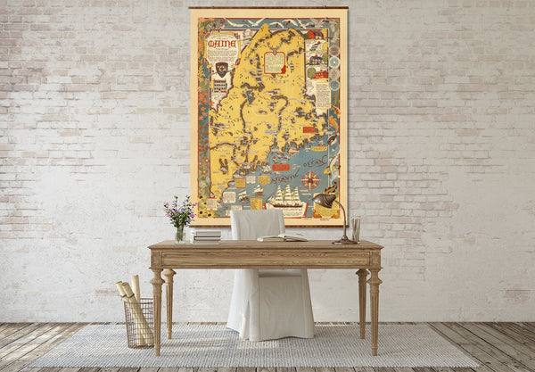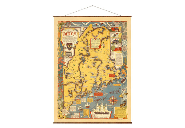 New England Map Canvas | Hand Restored 1939 Vintage Wall Decor Scroll