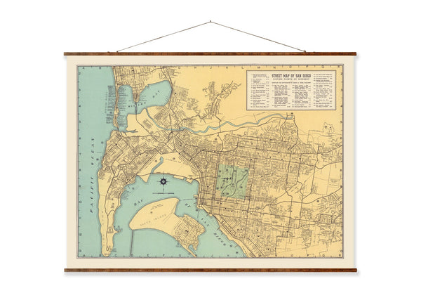 $115.00 - $325.00San Diego Map Canvas - Vintage City Map Artwork | Hand Restored Scroll
