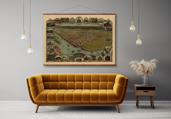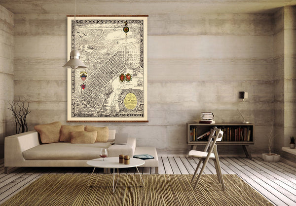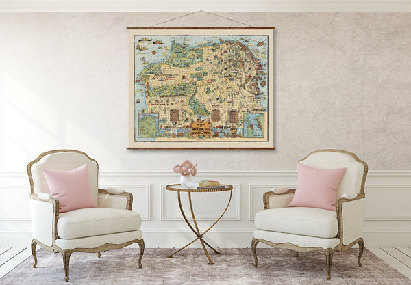 San Francisco Vintage Map - 1927 Historic City Canvas Wall Map Scroll