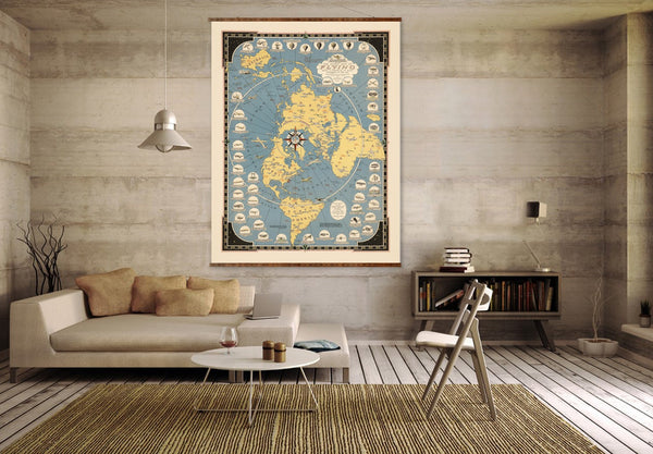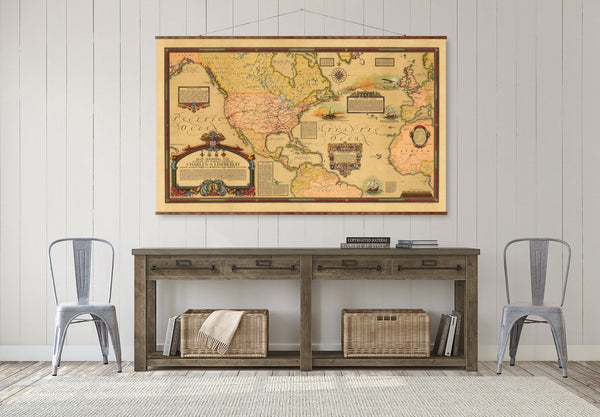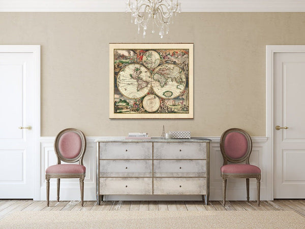 $115.00 - $325.00Vintage World Map - Hand Restored 17th Century Canvas Wall Art Scroll