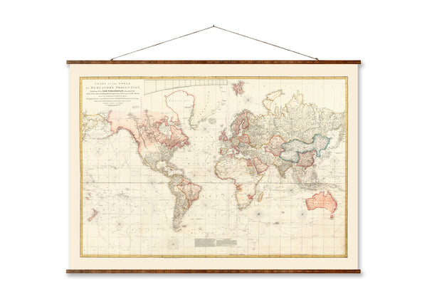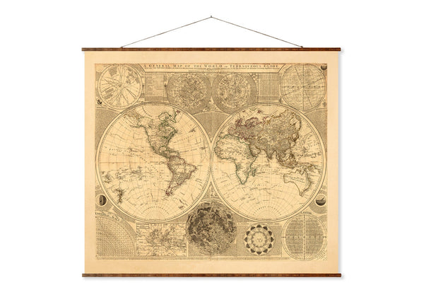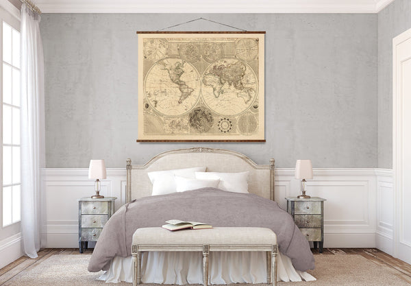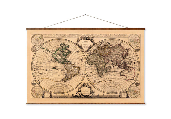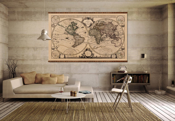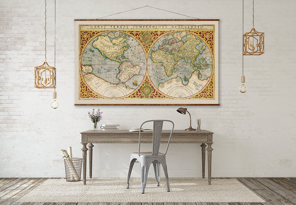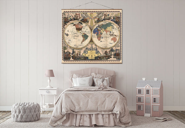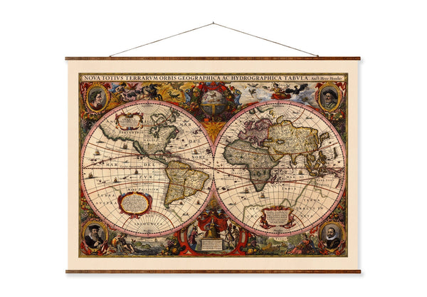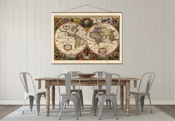 Vintage World Map - Hand Restored 17th Century Canvas Wall Art Scroll