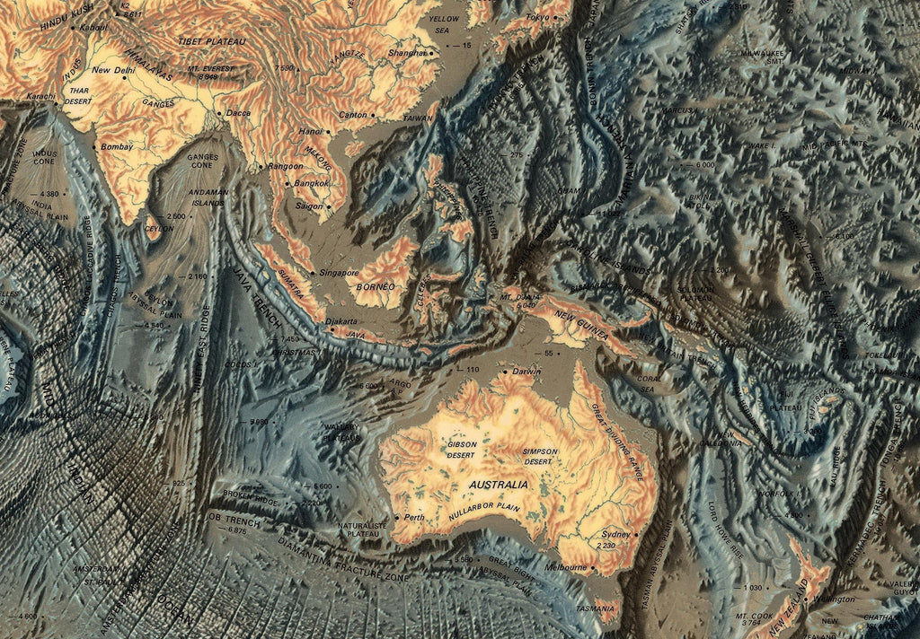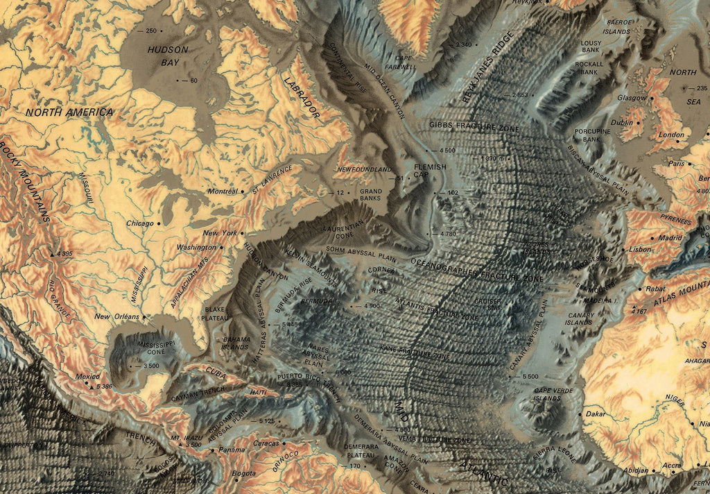 - Ocean floor map and land relief map combined for detailed topographic map art